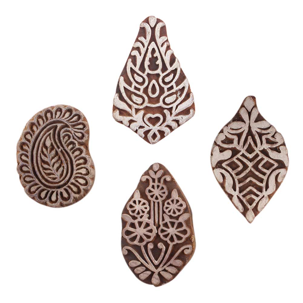 Set of 4 Piece New Mix Wooden Printing Blocks. Ideal for use on Fabric, Paper, Canvas, etc. These Blocks can be use to Print with Oil Colors, Fabric Colors, Water Colors, Acrylic Colors and Vegetable Colors.