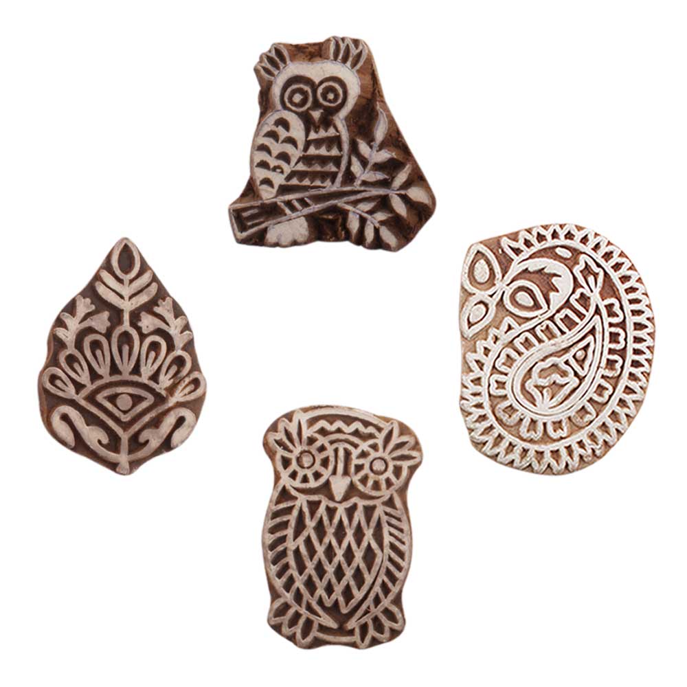 Set of 4 Piece New Mix Wooden Printing Blocks. Ideal for use on Fabric, Paper, Canvas, etc. These Blocks can be use to Print with Oil Colors, Fabric Colors, Water Colors, Acrylic Colors and Vegetable Colors.