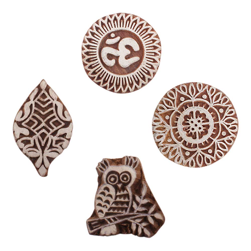 Set of 4 Piece New Mix Wooden Printing Blocks. Ideal for use on Fabric, Paper, Canvas, etc. These Blocks can be use to Print with Oil Colors, Fabric Colors, Water Colors, Acrylic Colors and Vegetable Colors.