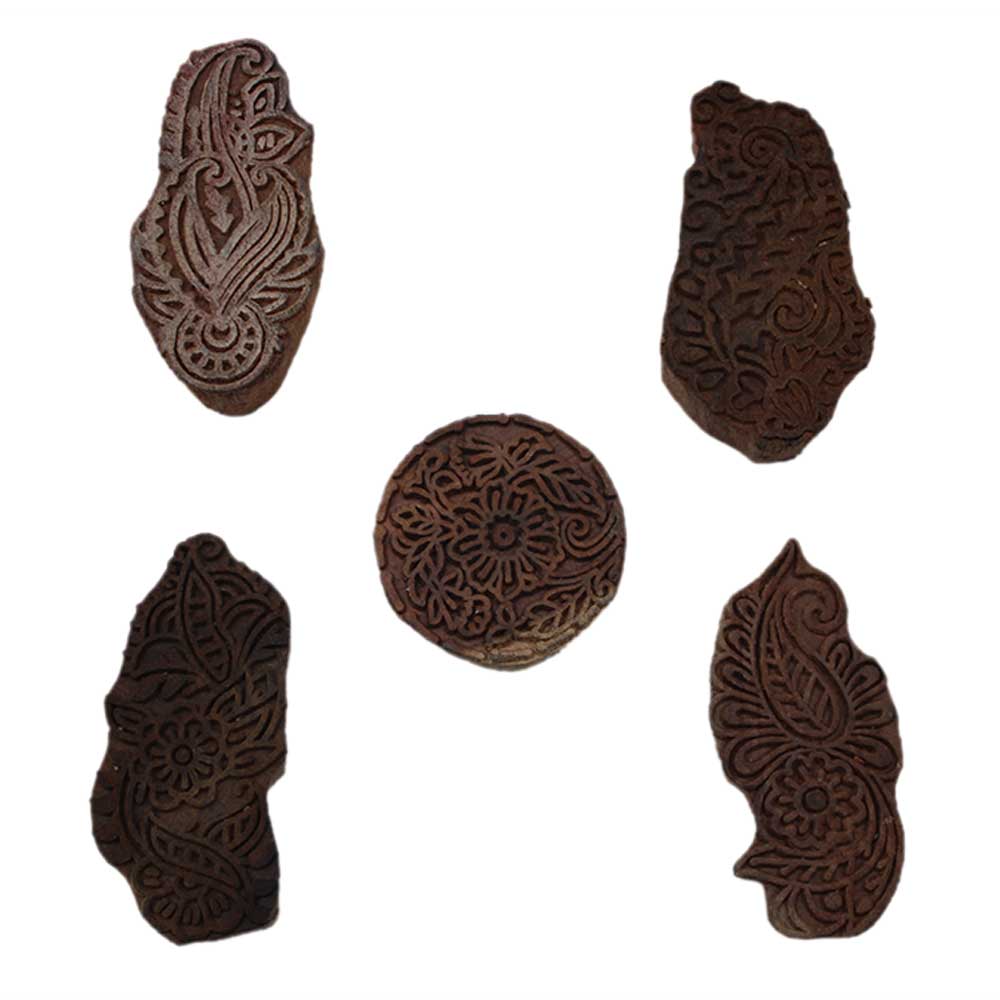Set of 5 Piece New Mix Wooden Printing Block. Ideal for Using on Fabric, Paper, Canvas, etc. These Blocks can be use to Print with Oil Colors, Fabric Colors, Water Colors, Acrylic Colors and Vegetable Colors.