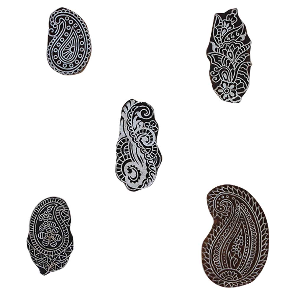 Set of 5 Piece New Mix Wooden Printing Block. Ideal for Using on Fabric, Paper, Canvas, etc. These Blocks can be use to Print with Oil Colors, Fabric Colors, Water Colors, Acrylic Colors and Vegetable Colors.