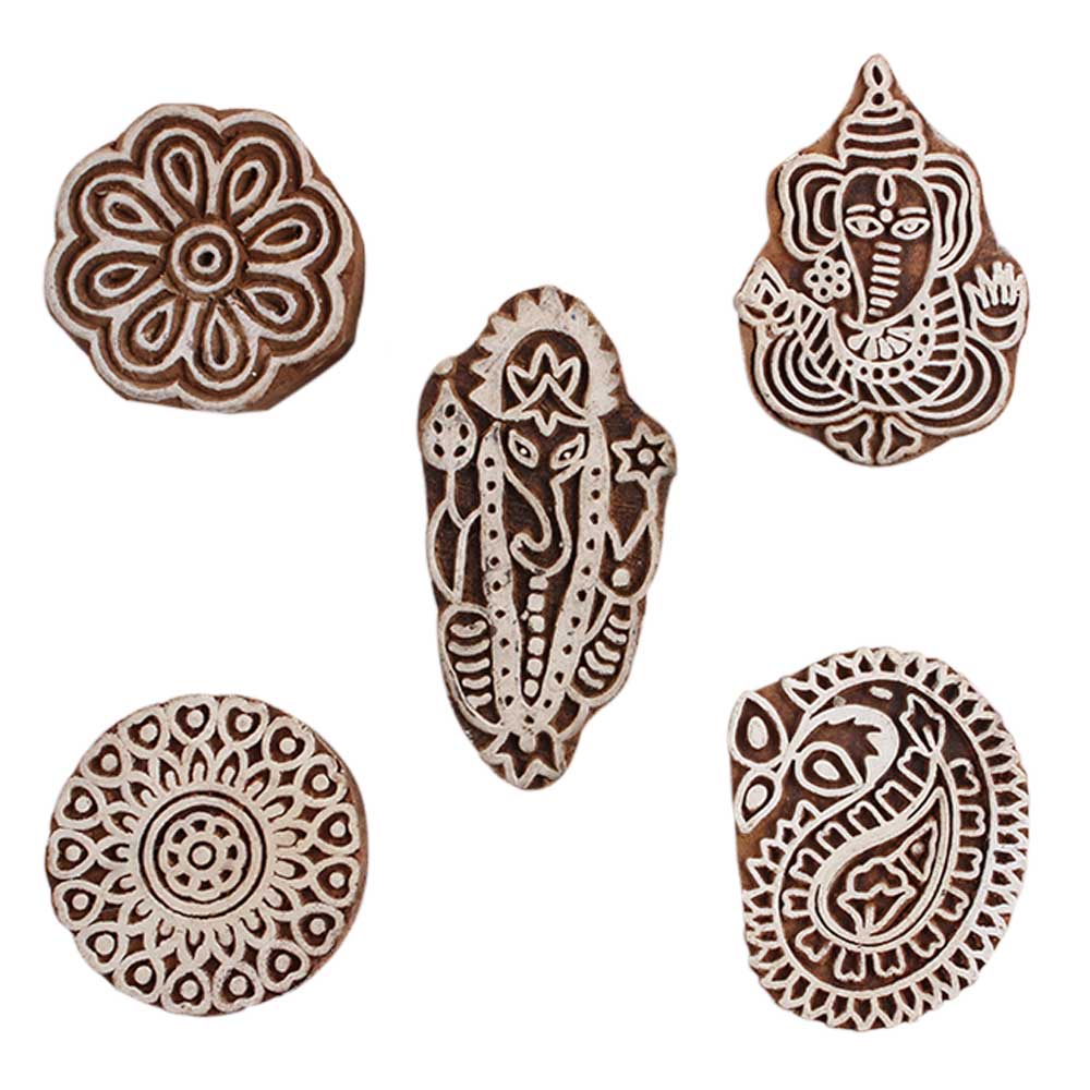 Set of 5 Piece New Mix Wooden Printing Block. Ideal for Using on Fabric, Paper, Canvas, etc. These Blocks can be use to Print with Oil Colors, Fabric Colors, Water Colors, Acrylic Colors and Vegetable Colors.