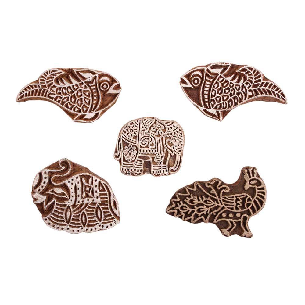 Set of 5 Piece New Mix Wooden Printing Block. Ideal for Using on Fabric, Paper, Canvas, etc. These Blocks can be use to Print with Oil Colors, Fabric Colors, Water Colors, Acrylic Colors and Vegetable Colors.