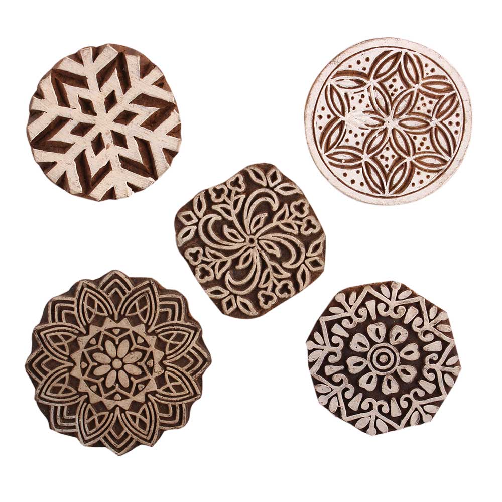 Set of 5 Piece New Mix Wooden Printing Block. Ideal for Using on Fabric, Paper, Canvas, etc. These Blocks can be use to Print with Oil Colors, Fabric Colors, Water Colors, Acrylic Colors and Vegetable Colors.