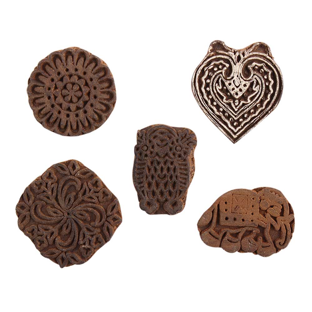 Set of 5 Piece New Mix Wooden Printing Block. Ideal for Using on Fabric, Paper, Canvas, etc. These Blocks can be use to Print with Oil Colors, Fabric Colors, Water Colors, Acrylic Colors and Vegetable Colors.
