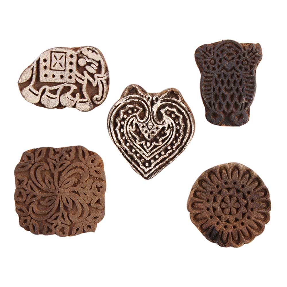 Set of 5 Piece New Mix Wooden Printing Block. Ideal for Using on Fabric, Paper, Canvas, etc. These Blocks can be use to Print with Oil Colors, Fabric Colors, Water Colors, Acrylic Colors and Vegetable Colors.