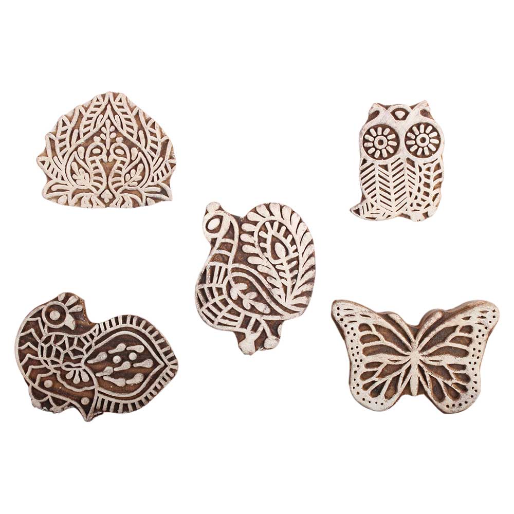 Set of 5 Piece New Mix Wooden Printing Block. Ideal for Using on Fabric, Paper, Canvas, etc. These Blocks can be use to Print with Oil Colors, Fabric Colors, Water Colors, Acrylic Colors and Vegetable Colors.