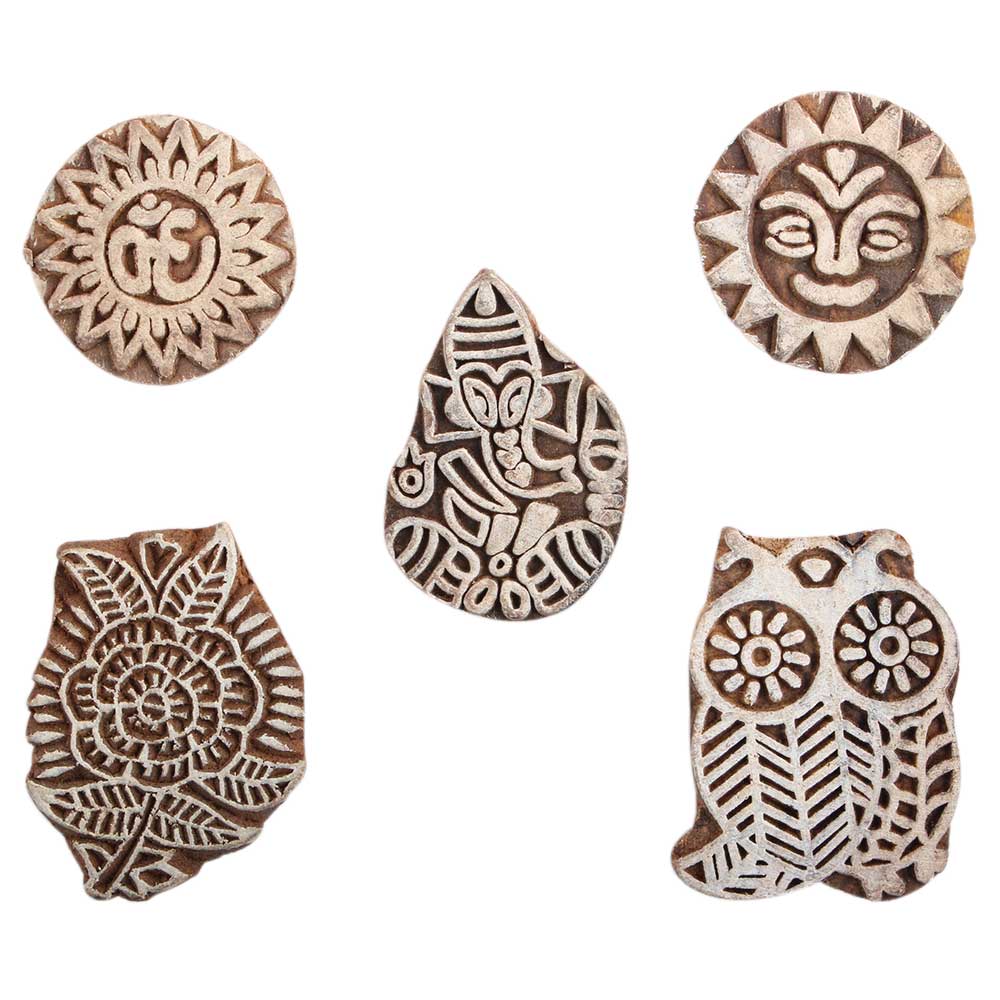 Set of 5 Piece New Mix Wooden Printing Block. Ideal for Using on Fabric, Paper, Canvas, etc. These Blocks can be use to Print with Oil Colors, Fabric Colors, Water Colors, Acrylic Colors and Vegetable Colors.