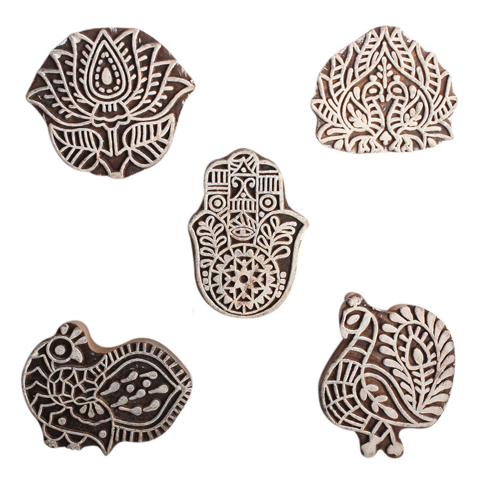 Set of 5 Piece New Mix Wooden Printing Block. Ideal for Using on Fabric, Paper, Canvas, etc. These Blocks can be use to Print with Oil Colors, Fabric Colors, Water Colors, Acrylic Colors and Vegetable Colors.