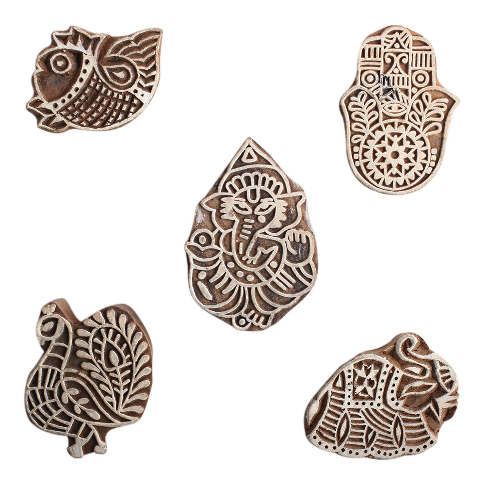 Set of 5 Piece New Mix Wooden Printing Block. Ideal for Using on Fabric, Paper, Canvas, etc. These Blocks can be use to Print with Oil Colors, Fabric Colors, Water Colors, Acrylic Colors and Vegetable Colors.