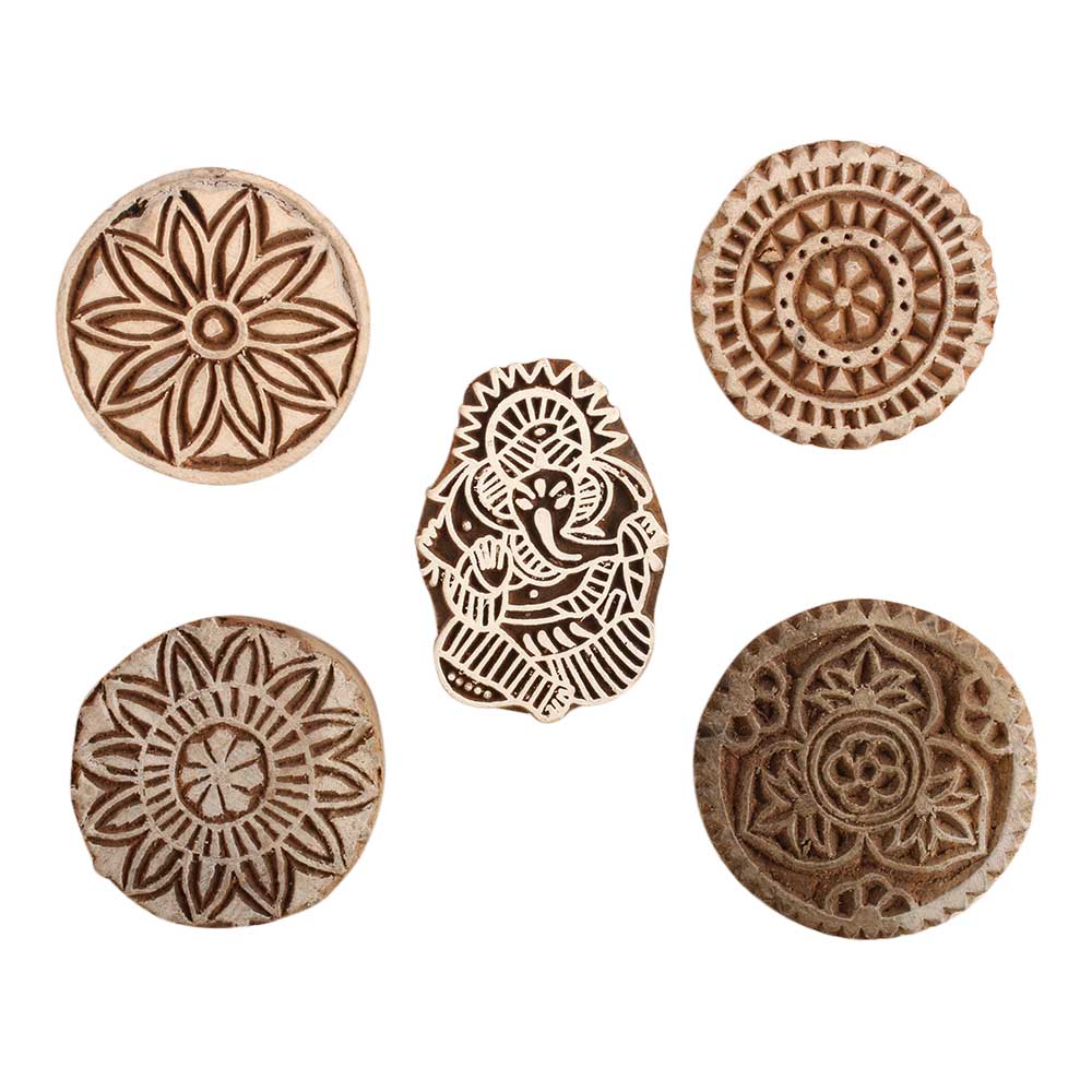 Set of 5 Piece New Mix Wooden Printing Block. Ideal for use on Fabric, Paper, Canvas, etc. These Blocks can be use to Print with Oil Colors, Fabric Colors, Water Colors, Acrylic Colors and Vegetable Colors.