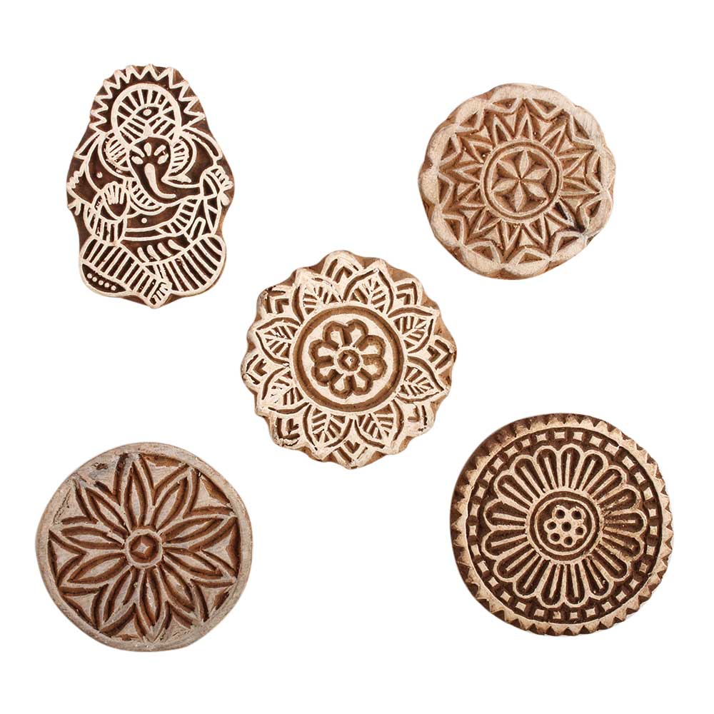 Set of 5 Piece New Mix Wooden Printing Block. Ideal for use on Fabric, Paper, Canvas, etc. These Blocks can be use to Print with Oil Colors, Fabric Colors, Water Colors, Acrylic Colors and Vegetable Colors.