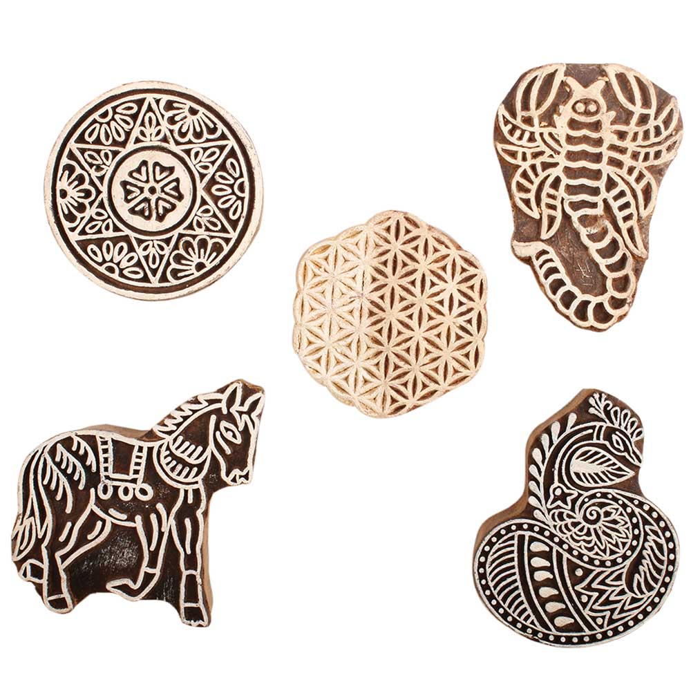 Set of 5 Piece New Mix Wooden Printing Block. Ideal for use on Fabric, Paper, Canvas, etc. These Blocks can be use to Print with Oil Colors, Fabric Colors, Water Colors, Acrylic Colors and Vegetable Colors.