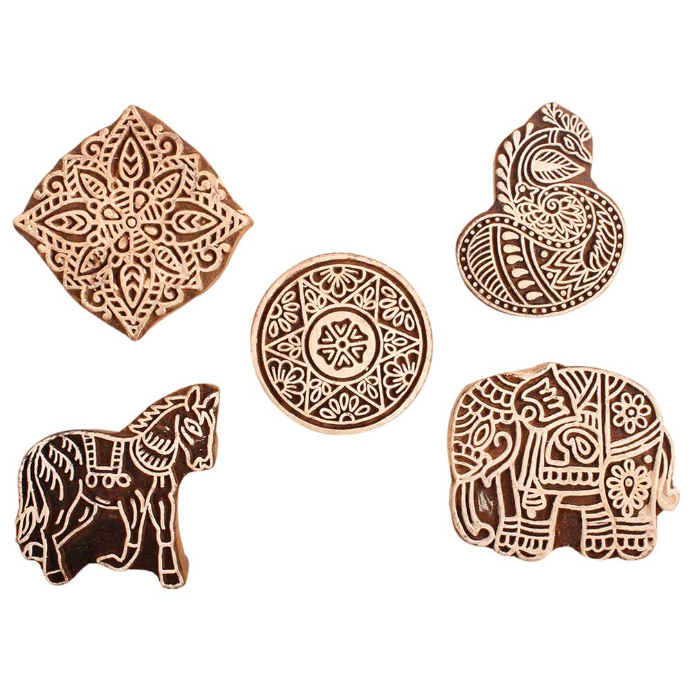 Set of 5 Piece New Mix Wooden Printing Block. Ideal for use on Fabric, Paper, Canvas, etc. These Blocks can be use to Print with Oil Colors, Fabric Colors, Water Colors, Acrylic Colors and Vegetable Colors.