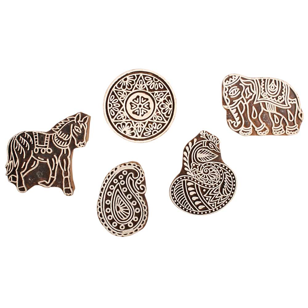 Set of 5 Piece New Mix Wooden Printing Block. Ideal for use on Fabric, Paper, Canvas, etc. These Blocks can be use to Print with Oil Colors, Fabric Colors, Water Colors, Acrylic Colors and Vegetable Colors.