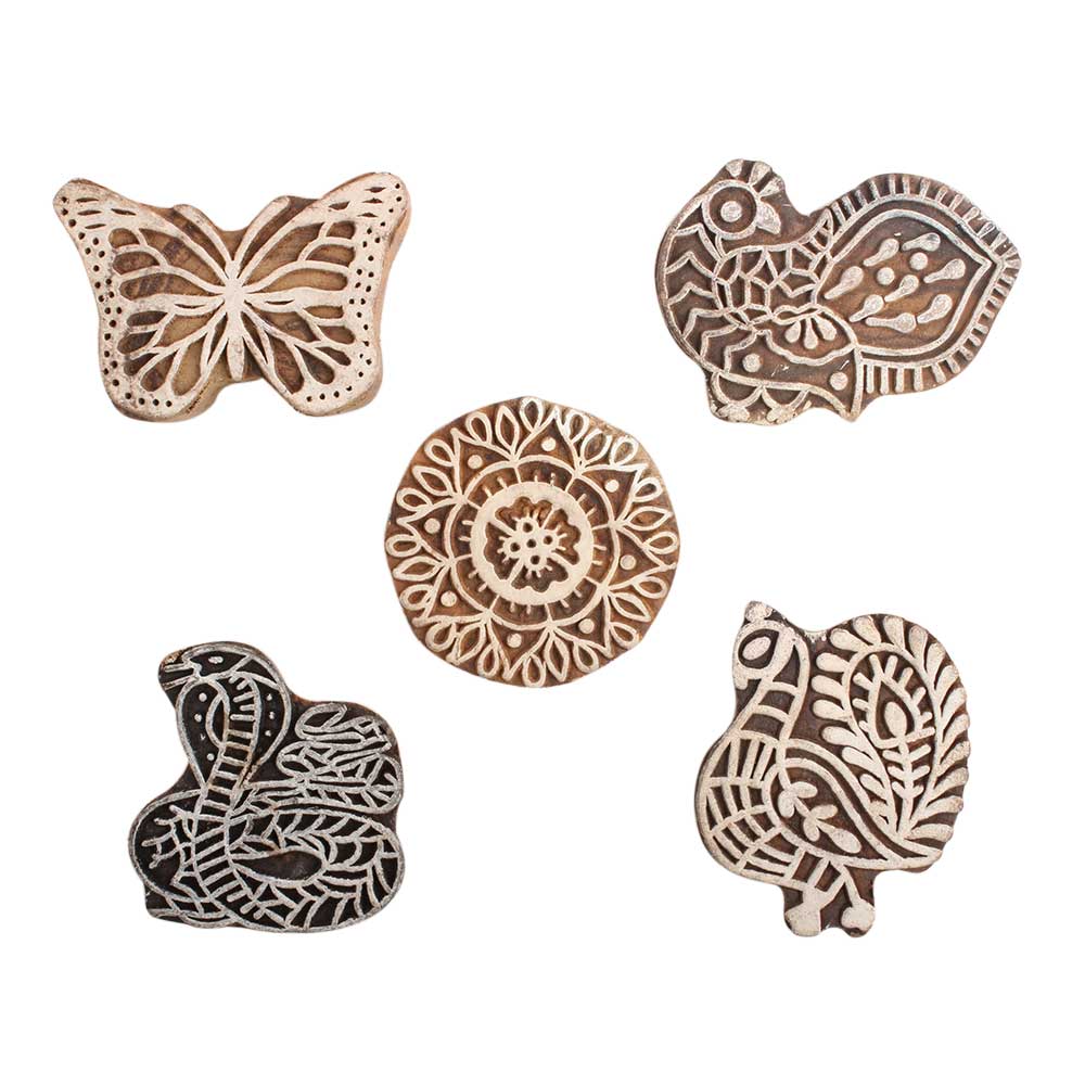 Set of 5 Piece New Mix Wooden Printing Block. Ideal for use on Fabric, Paper, Canvas, etc. These Blocks can be use to Print with Oil Colors, Fabric Colors, Water Colors, Acrylic Colors and Vegetable Colors.