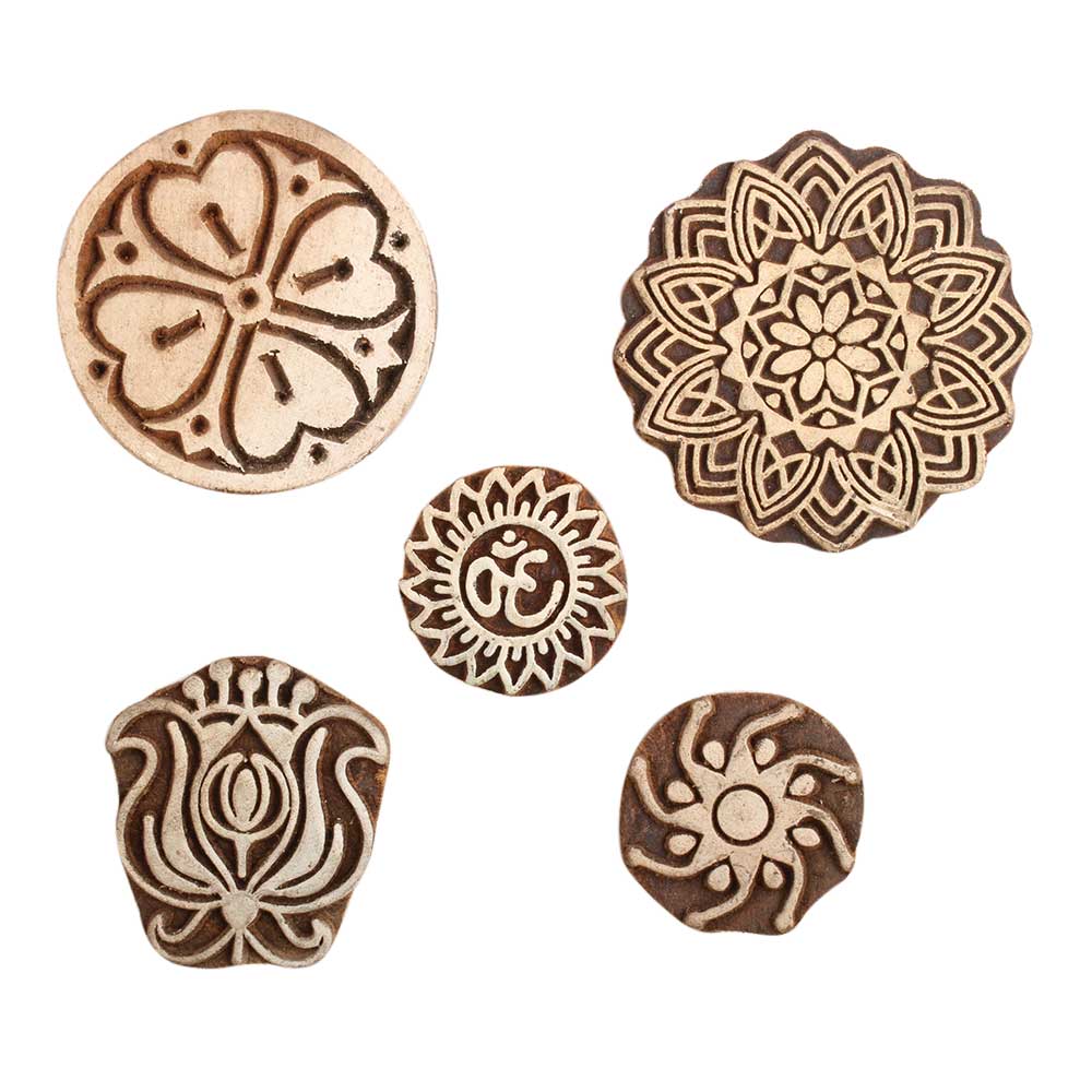 Set of 5 Piece New Mix Wooden Printing Block. Ideal for use on Fabric, Paper, Canvas, etc. These Blocks can be use to Print with Oil Colors, Fabric Colors, Water Colors, Acrylic Colors and Vegetable Colors.