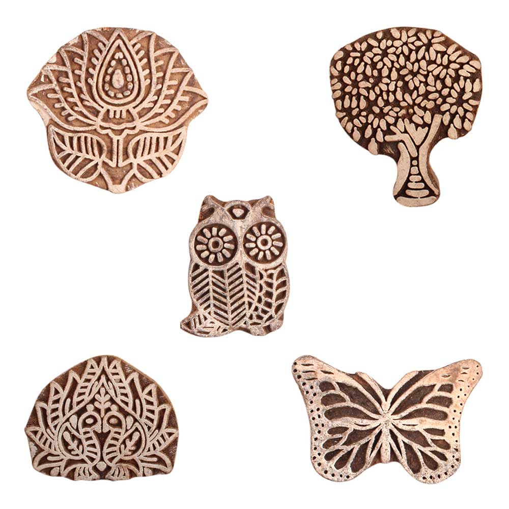 Set of 5 Piece New Mix Wooden Printing Block. Ideal for use on Fabric, Paper, Canvas, etc. These Blocks can be use to Print with Oil Colors, Fabric Colors, Water Colors, Acrylic Colors and Vegetable Colors.