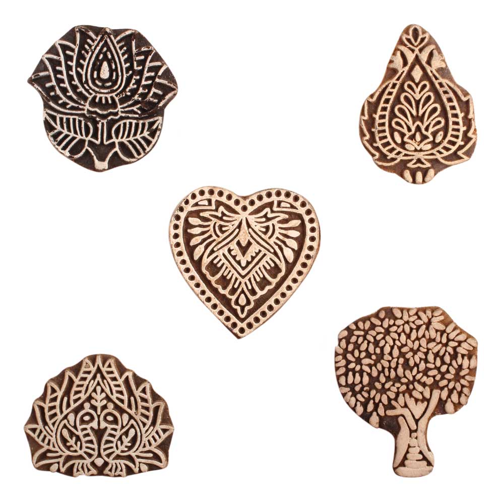 Set of 5 Piece New Mix Wooden Printing Block. Ideal for use on Fabric, Paper, Canvas, etc. These Blocks can be use to Print with Oil Colors, Fabric Colors, Water Colors, Acrylic Colors and Vegetable Colors.