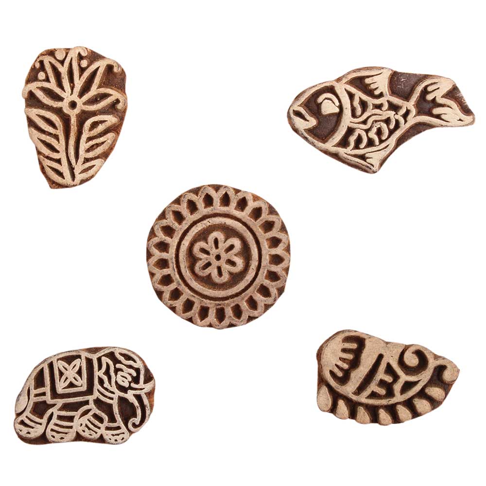 Set of 5 Piece New Mix Wooden Printing Block. Ideal for use on Fabric, Paper, Canvas, etc. These Blocks can be use to Print with Oil Colors, Fabric Colors, Water Colors, Acrylic Colors and Vegetable Colors.