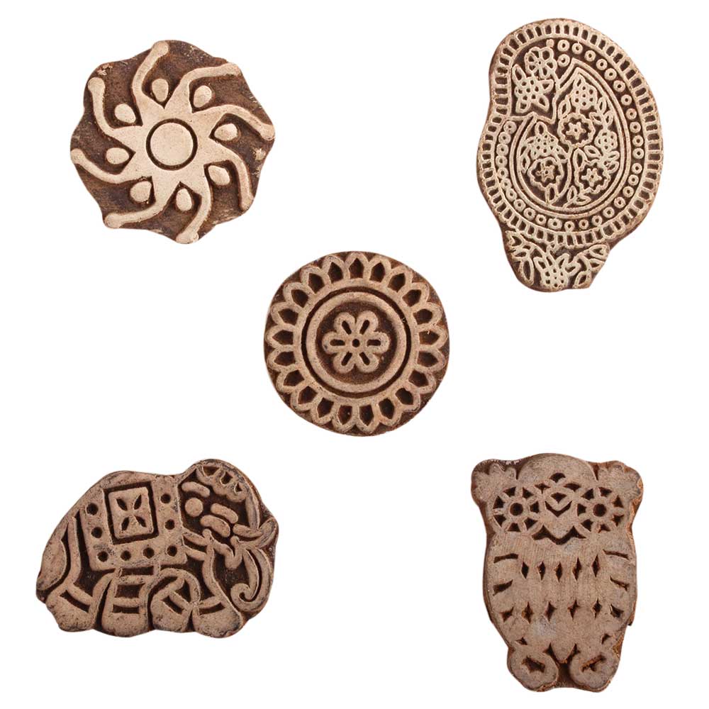 Set of 5 Piece New Mix Wooden Printing Block. Ideal for use on Fabric, Paper, Canvas, etc. These Blocks can be use to Print with Oil Colors, Fabric Colors, Water Colors, Acrylic Colors and Vegetable Colors.