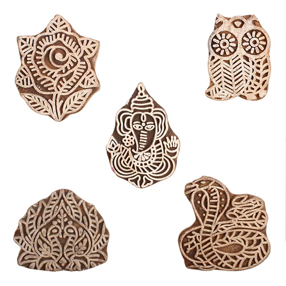 Set of 5 Piece New Mix Wooden Printing Block. Ideal for use on Fabric, Paper, Canvas, etc. These Blocks can be use to Print with Oil Colors, Fabric Colors, Water Colors, Acrylic Colors and Vegetable Colors.