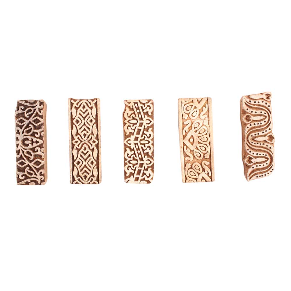 Set of 5 Piece New Mix Wooden Printing Block. Ideal for use on Fabric, Paper, Canvas, etc. These Blocks can be use to Print with Oil Colors, Fabric Colors, Water Colors, Acrylic Colors and Vegetable Colors.