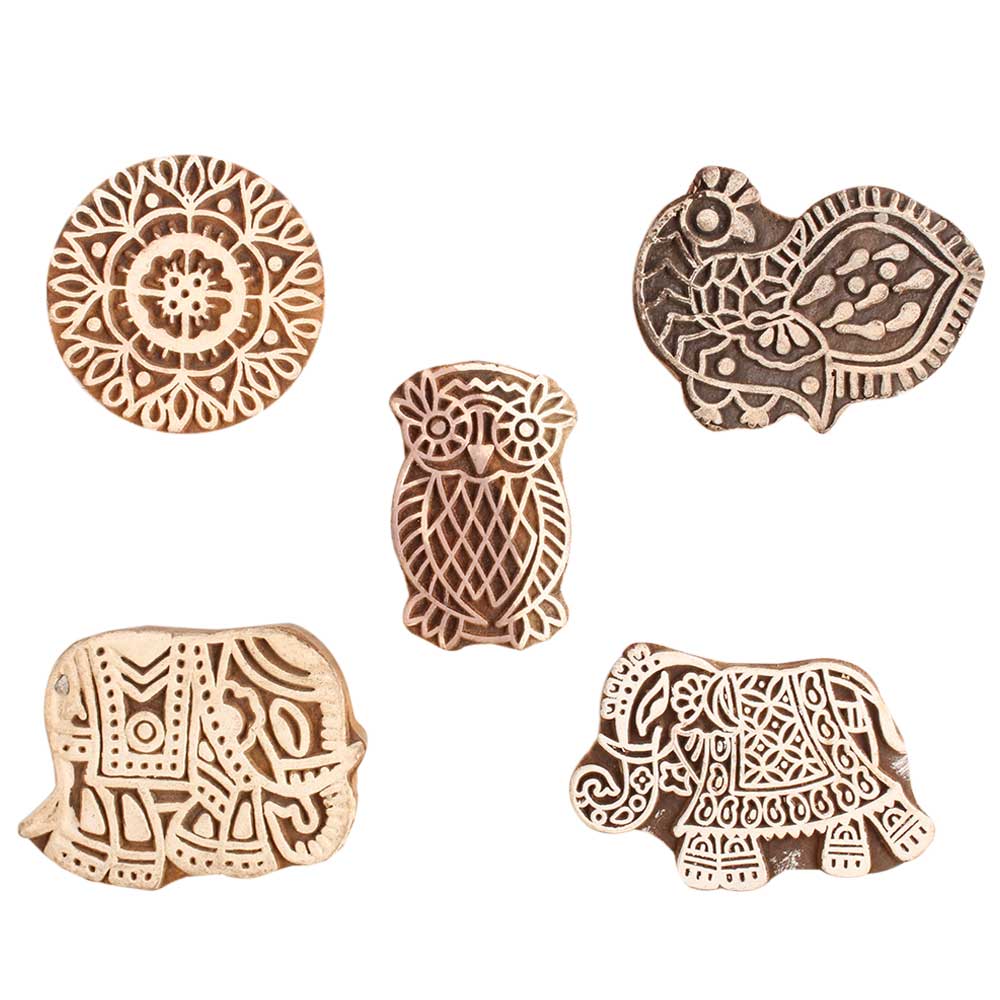 Set of 5 Piece New Mix Wooden Printing Block. Ideal for use on Fabric, Paper, Canvas, etc. These Blocks can be use to Print with Oil Colors, Fabric Colors, Water Colors, Acrylic Colors and Vegetable Colors.
