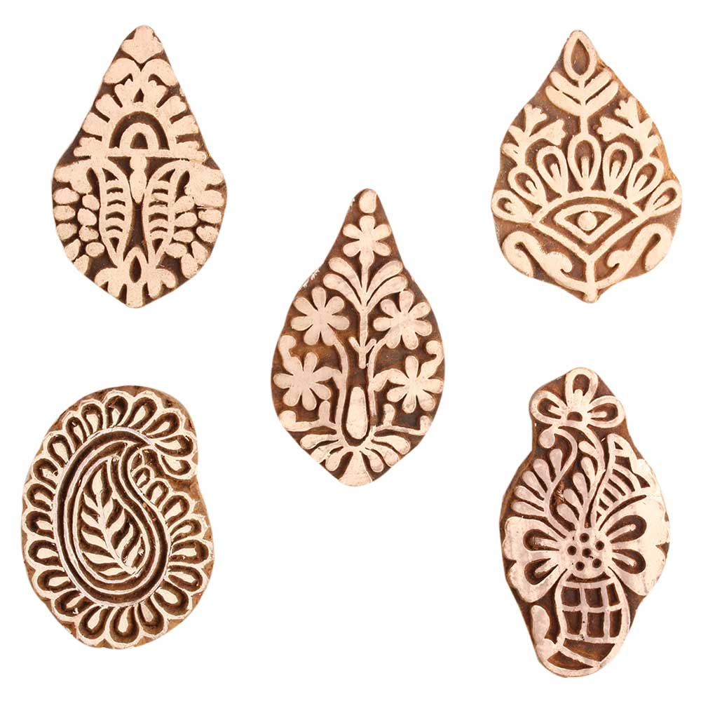 Set of 5 Piece New Mix Wooden Printing Block. Ideal for use on Fabric, Paper, Canvas, etc. These Blocks can be use to Print with Oil Colors, Fabric Colors, Water Colors, Acrylic Colors and Vegetable Colors.
