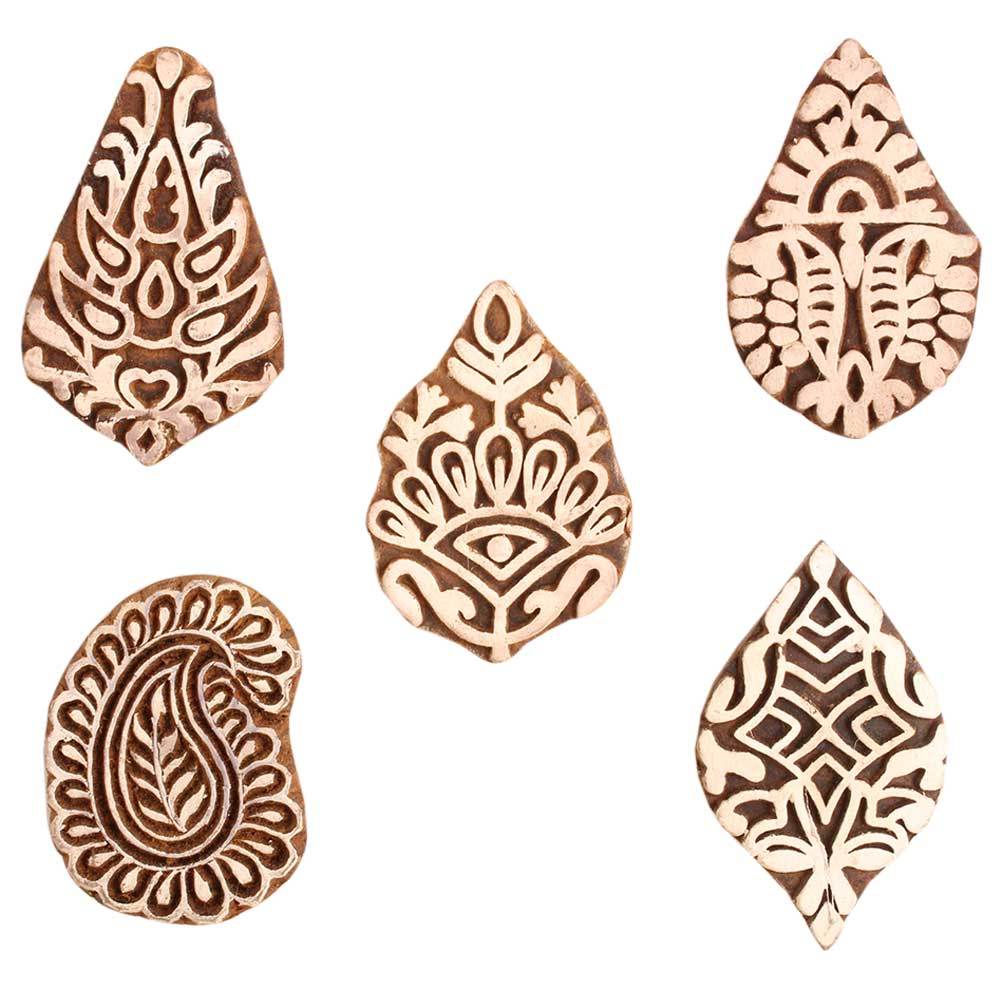 Set of 5 Piece New Mix Wooden Printing Block. Ideal for use on Fabric, Paper, Canvas, etc. These Blocks can be use to Print with Oil Colors, Fabric Colors, Water Colors, Acrylic Colors and Vegetable Colors.
