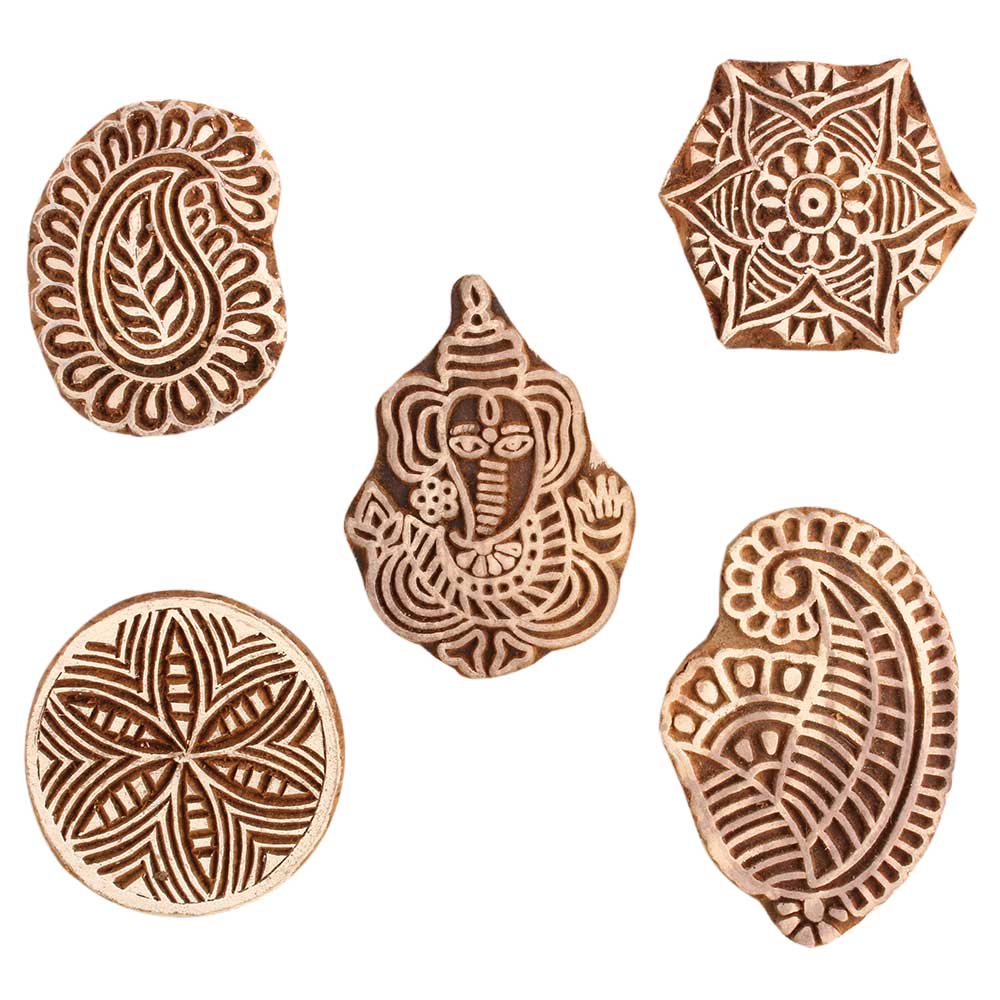 Set of 5 Piece New Mix Wooden Printing Block. Ideal for use on Fabric, Paper, Canvas, etc. These Blocks can be use to Print with Oil Colors, Fabric Colors, Water Colors, Acrylic Colors and Vegetable Colors.