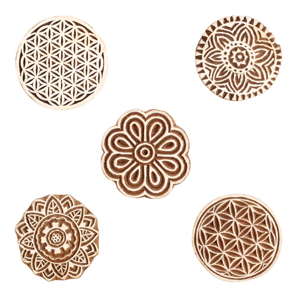 Set of 5 Piece New Mix Wooden Printing Block. Ideal for use on Fabric, Paper, Canvas, etc. These Blocks can be use to Print with Oil Colors, Fabric Colors, Water Colors, Acrylic Colors and Vegetable Colors.
