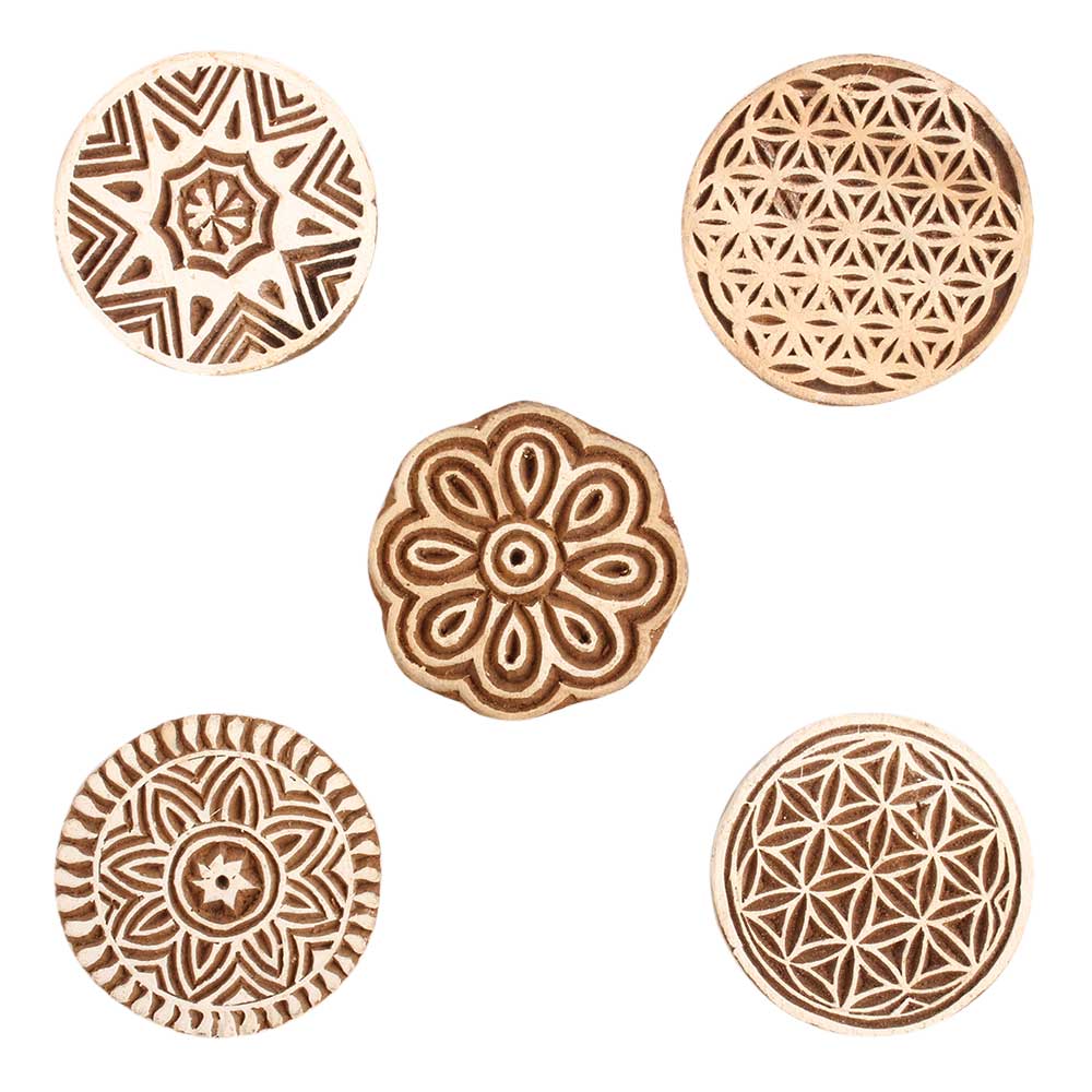 Set of 5 Piece New Mix Wooden Printing Block. Ideal for use on Fabric, Paper, Canvas, etc. These Blocks can be use to Print with Oil Colors, Fabric Colors, Water Colors, Acrylic Colors and Vegetable Colors.