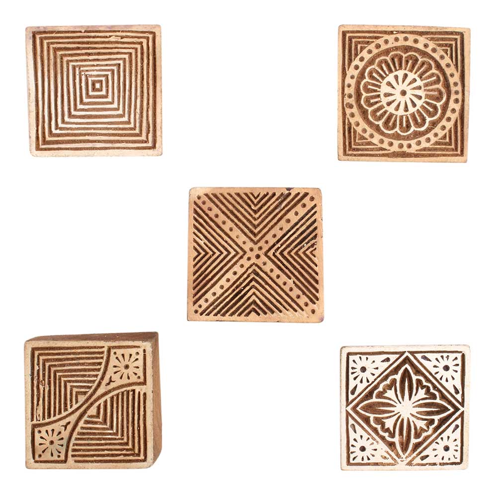 The Set of 5 Piece New Mix Wooden Printing Blocks is easy to use and care for. Simply apply your medium (ink, paint, or dye) to the raised design, press it onto your chosen surface, and lift to reveal your print. After use, cleaning the blocks is simple—just wipe them with a damp cloth, and they’re ready for the next project.