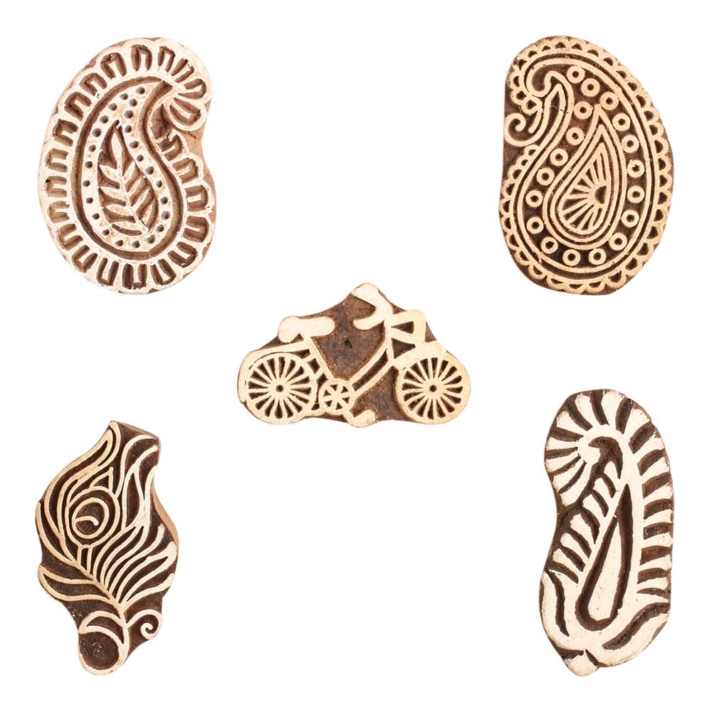 Set of 5 Piece New Mix Wooden Printing Block. Ideal for use on Fabric, Paper, Canvas, etc. These Blocks can be use to Print with Oil Colors, Fabric Colors, Water Colors, Acrylic Colors and Vegetable Colors.