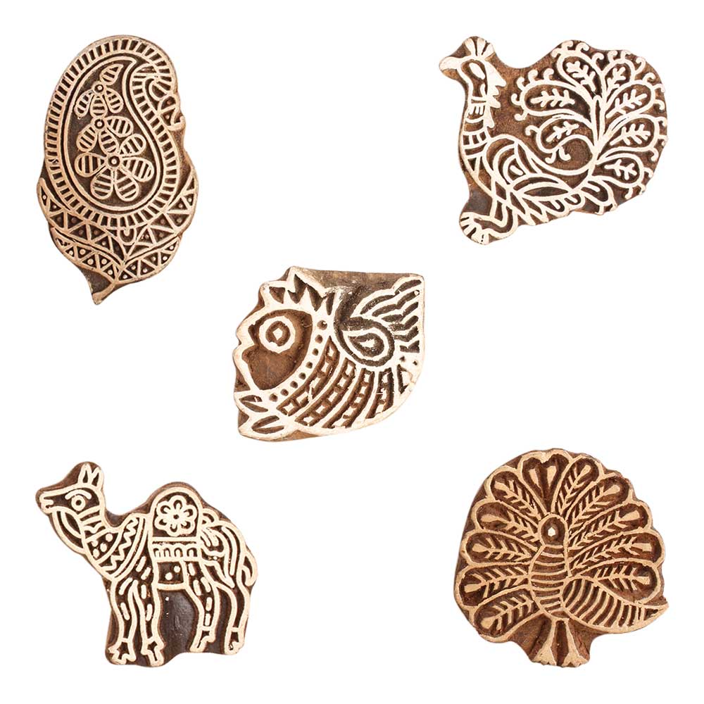 Set of 5 Piece New Mix Wooden Printing Block. Ideal for use on Fabric, Paper, Canvas, etc. These Blocks can be use to Print with Oil Colors, Fabric Colors, Water Colors, Acrylic Colors and Vegetable Colors.