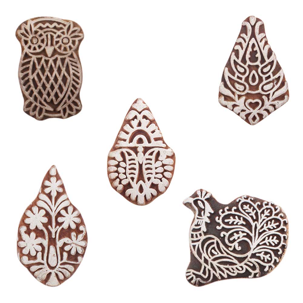 Set of 5 Piece New Mix Wooden Printing Blocks. Ideal for use on Fabric, Paper, Canvas, etc. These Blocks can be use to Print with Oil Colors, Fabric Colors, Water Colors, Acrylic Colors and Vegetable Colors.
