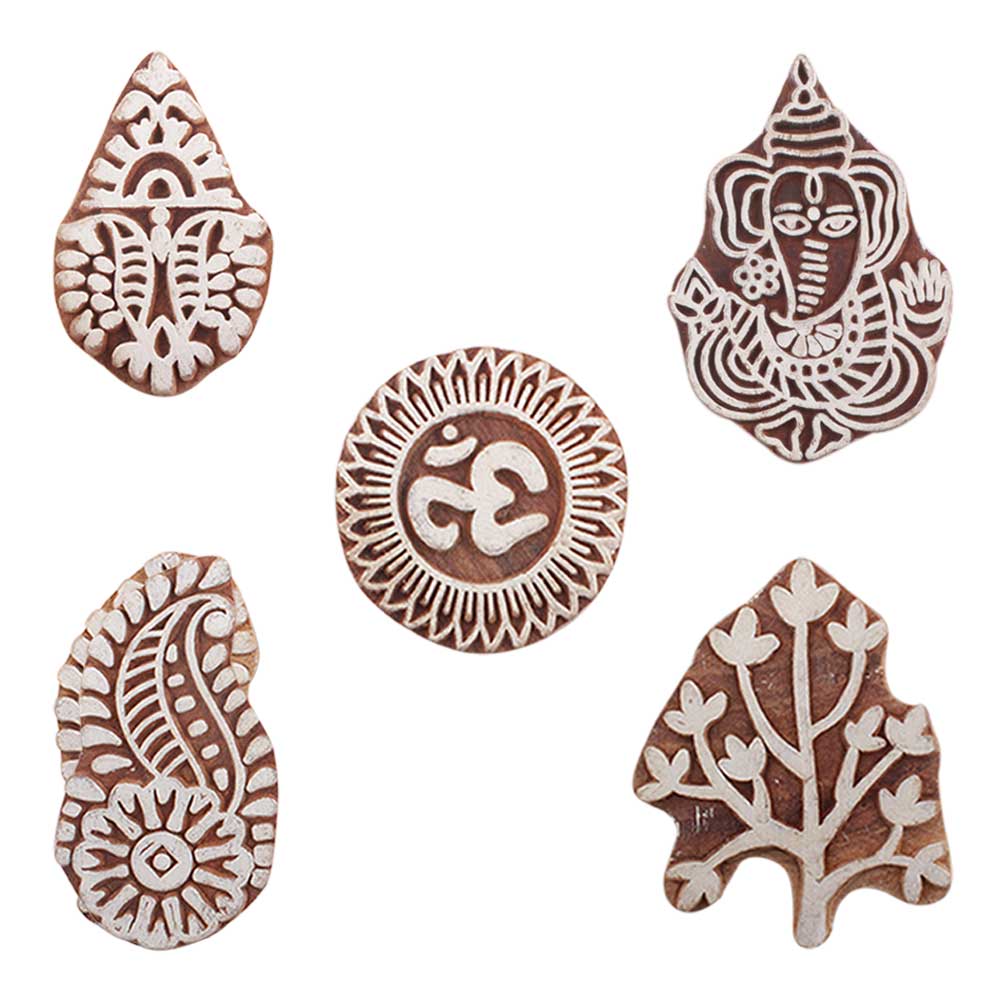 Set of 5 Piece New Mix Wooden Printing Blocks. Ideal for use on Fabric, Paper, Canvas, etc. These Blocks can be use to Print with Oil Colors, Fabric Colors, Water Colors, Acrylic Colors and Vegetable Colors.