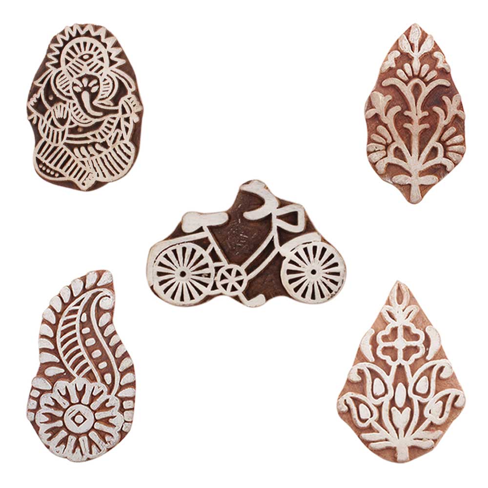 Set of 5 Piece New Mix Wooden Printing Blocks. Ideal for use on Fabric, Paper, Canvas, etc. These Blocks can be use to Print with Oil Colors, Fabric Colors, Water Colors, Acrylic Colors and Vegetable Colors.