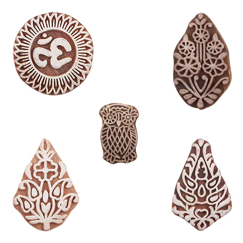 Set of 5 Piece New Mix Wooden Printing Blocks. Ideal for use on Fabric, Paper, Canvas, etc. These Blocks can be use to Print with Oil Colors, Fabric Colors, Water Colors, Acrylic Colors and Vegetable Colors.