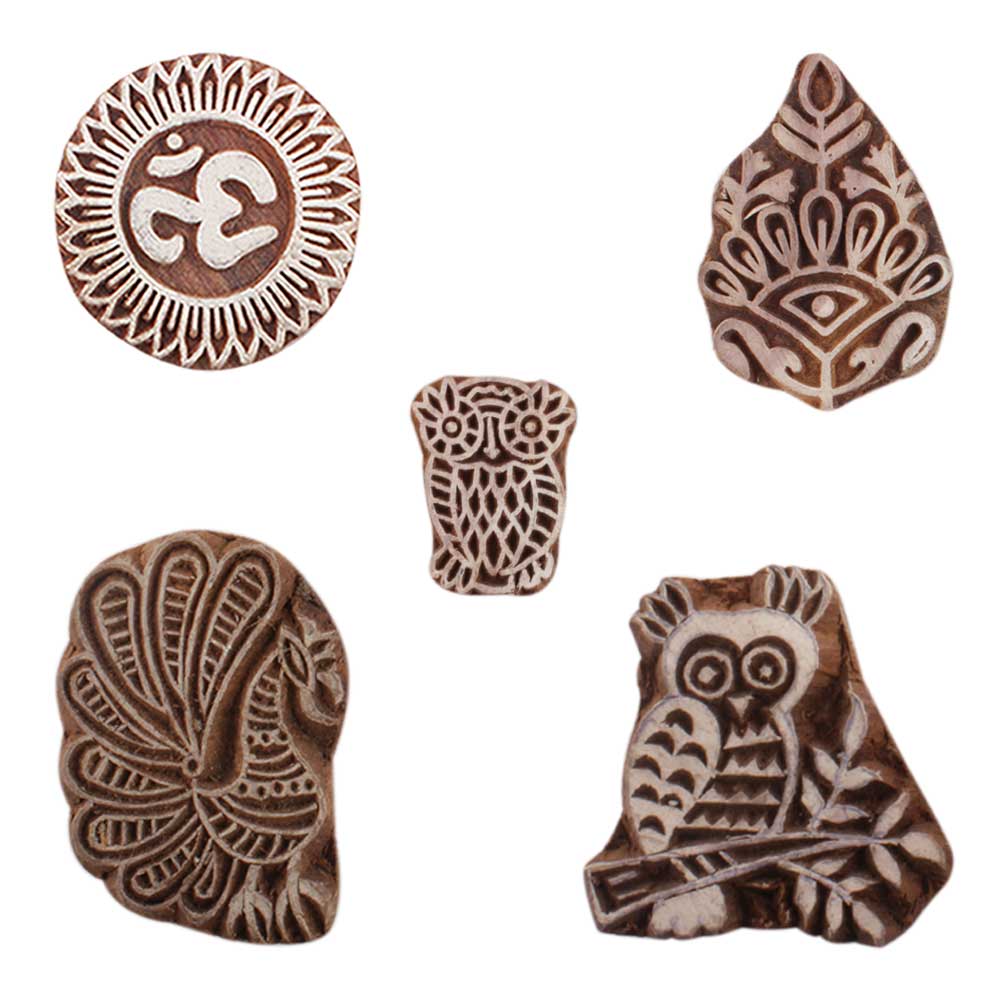 Set of 5 Piece New Mix Wooden Printing Blocks. Ideal for use on Fabric, Paper, Canvas, etc. These Blocks can be use to Print with Oil Colors, Fabric Colors, Water Colors, Acrylic Colors and Vegetable Colors.