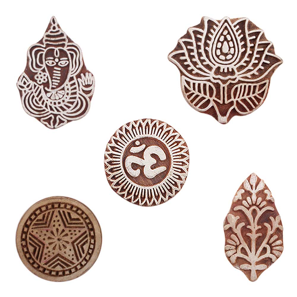 Set of 5 Piece New Mix Wooden Printing Blocks. Ideal for use on Fabric, Paper, Canvas, etc. These Blocks can be use to Print with Oil Colors, Fabric Colors, Water Colors, Acrylic Colors and Vegetable Colors.