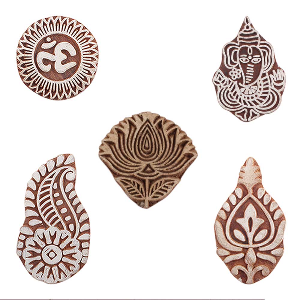 Set of 5 Piece New Mix Wooden Printing Blocks. Ideal for use on Fabric, Paper, Canvas, etc. These Blocks can be use to Print with Oil Colors, Fabric Colors, Water Colors, Acrylic Colors and Vegetable Colors.
