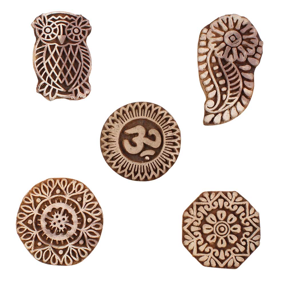 Set of 5 Piece New Mix Wooden Printing Blocks. Ideal for use on Fabric, Paper, Canvas, etc. These Blocks can be use to Print with Oil Colors, Fabric Colors, Water Colors, Acrylic Colors and Vegetable Colors.