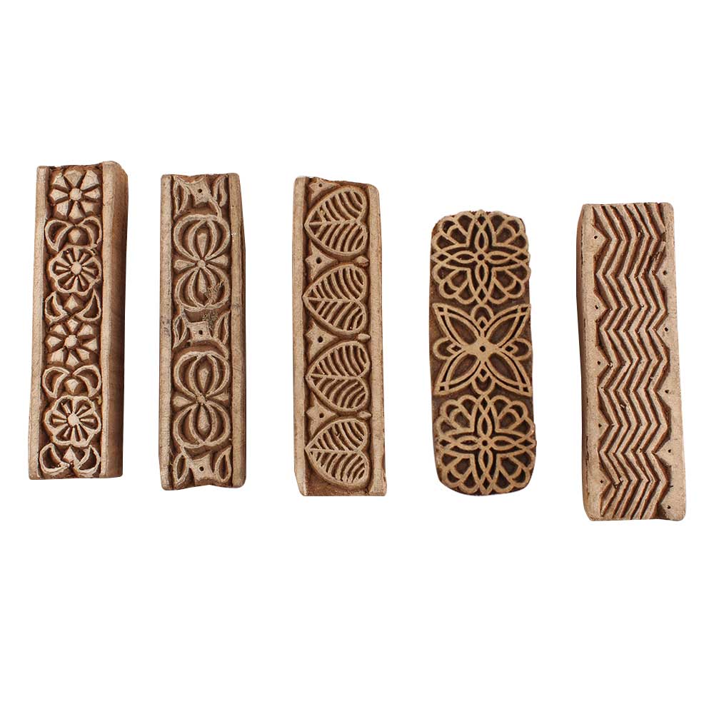 Set of 5 Piece New Mix Wooden Printing Blocks. Ideal for use on Fabric, Paper, Canvas, etc. These Blocks can be use to Print with Oil Colors, Fabric Colors, Water Colors, Acrylic Colors and Vegetable Colors.