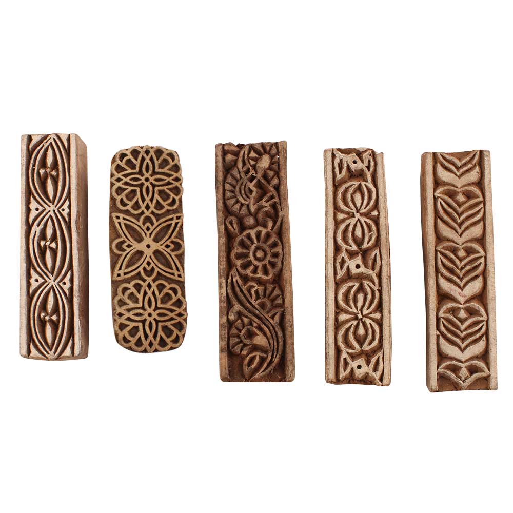 Set of 5 Piece New Mix Wooden Printing Blocks. Ideal for use on Fabric, Paper, Canvas, etc. These Blocks can be use to Print with Oil Colors, Fabric Colors, Water Colors, Acrylic Colors and Vegetable Colors.