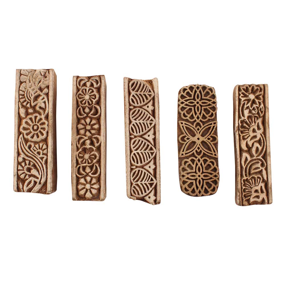Set of 5 Piece New Mix Wooden Printing Blocks. Ideal for use on Fabric, Paper, Canvas, etc. These Blocks can be use to Print with Oil Colors, Fabric Colors, Water Colors, Acrylic Colors and Vegetable Colors.