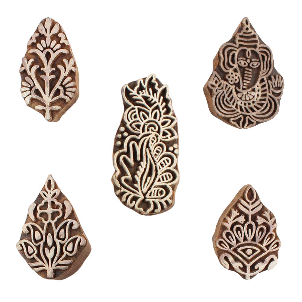 Set of 5 Piece New Mix Wooden Printing Blocks. Ideal for use on Fabric, Paper, Canvas, etc. These Blocks can be use to Print with Oil Colors, Fabric Colors, Water Colors, Acrylic Colors and Vegetable Colors.