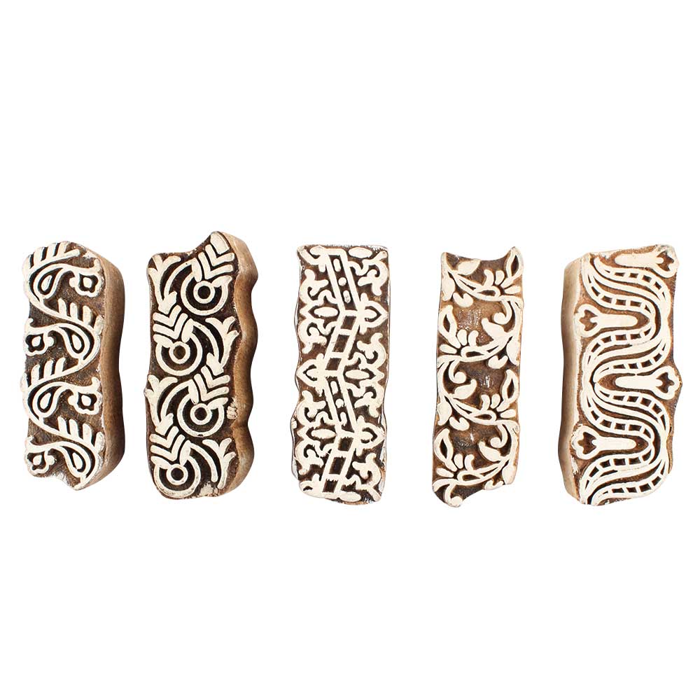 Set of 5 Piece New Mix Wooden Printing Blocks. Ideal for use on Fabric, Paper, Canvas, etc. These Blocks can be use to Print with Oil Colors, Fabric Colors, Water Colors, Acrylic Colors and Vegetable Colors.