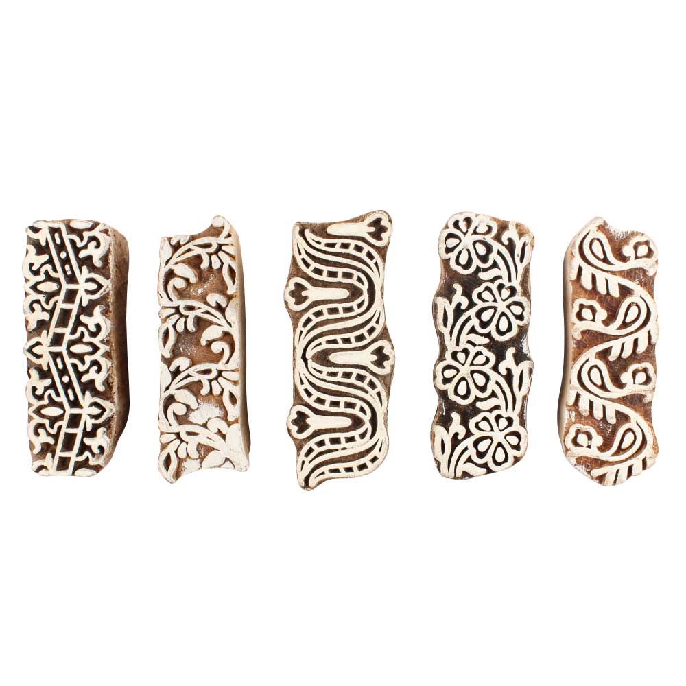Set of 5 Piece New Mix Wooden Printing Blocks. Ideal for use on Fabric, Paper, Canvas, etc. These Blocks can be use to Print with Oil Colors, Fabric Colors, Water Colors, Acrylic Colors and Vegetable Colors.